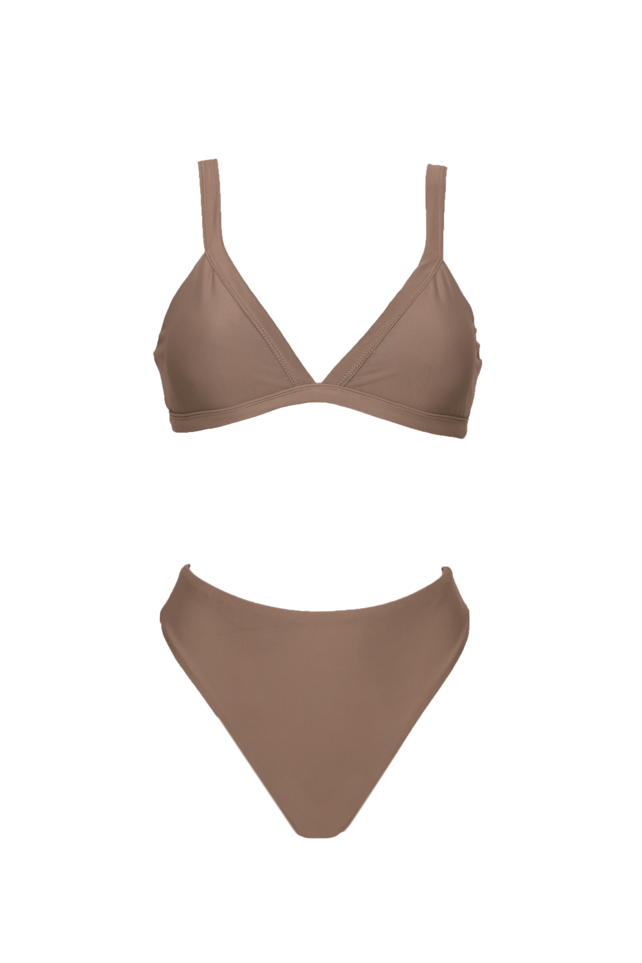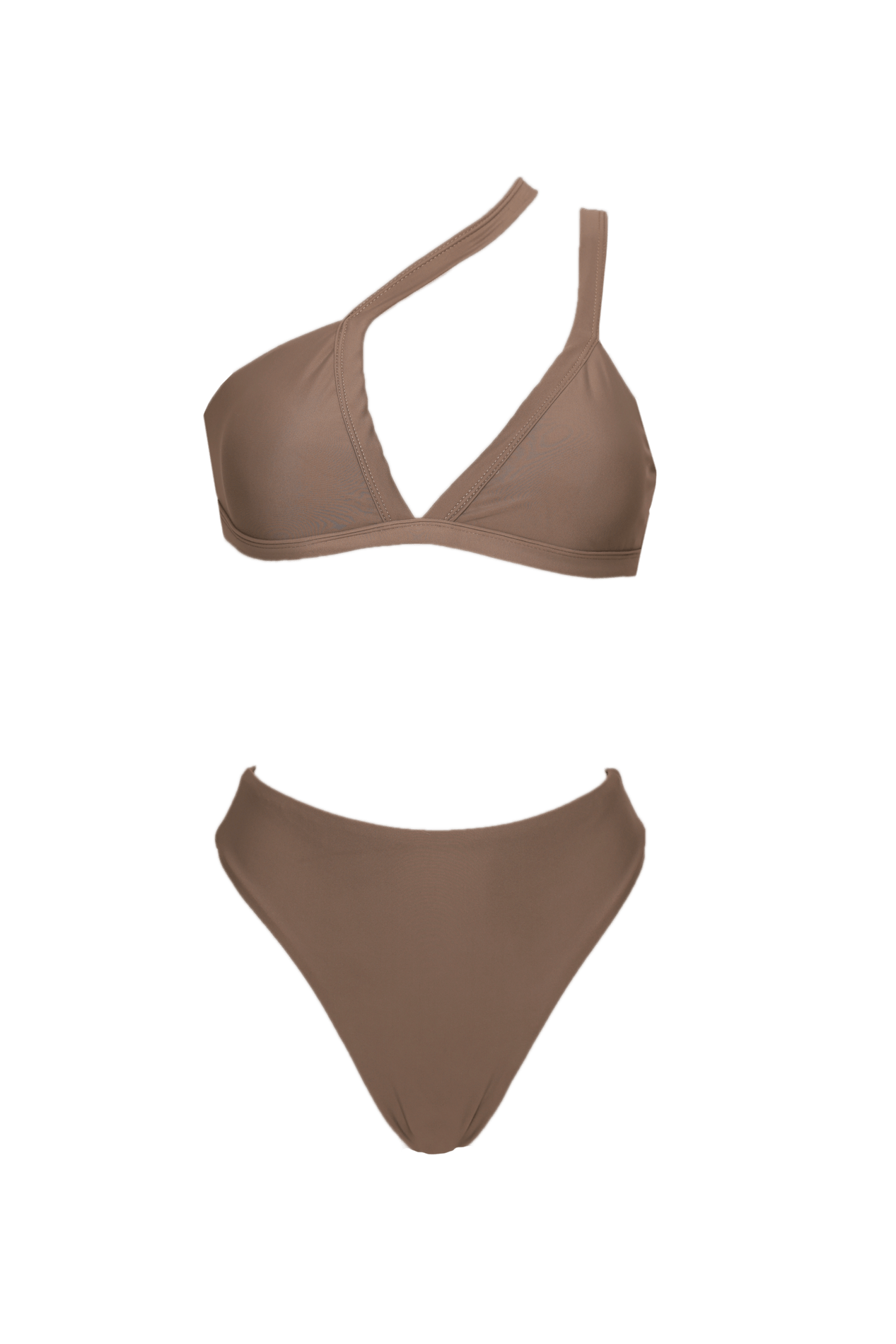Double cloth bikini. Possibility to place the strap asymmetrically. Top with removable cups and adjustable back. Adjustable straps. High-waisted bottom.